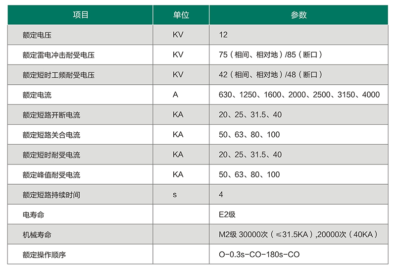 三、君源电力VCB-12P户内高压真空断路器(固封极柱)技术参数: